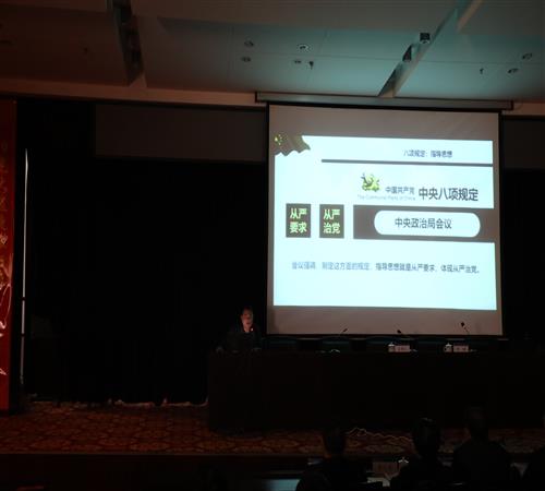 會上,劉潤詳細講解了八項規定政策精神,分析了近年來違反八項規定的典型案例,并以自身多年的工作經驗,對落實落細八項規定政策精神進行了深入的講解和剖析。